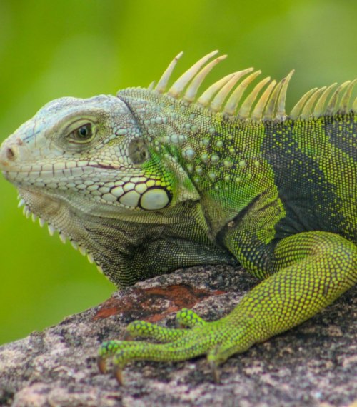 On land, dry forest and lush vegetation cover parts of the coast and islands. You can find iguanas, lizards, snakes, and small rabbits in rocky and wooded areas. These reptiles often rest on warm rocks near sand beaches.